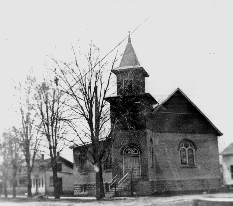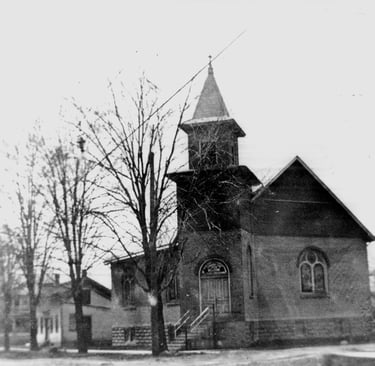 The building at the corner of 10th and Jackson was originally built by the First Church of God 1905. They first met in a wood frame building on the opposite corner when they were organized in 1887. That building was the original Presbyterian Church building that they moved out of to build their current building. First Church of God joined with Auburn Church of God in 1971 and they built the Indian Village Church of God (now County Line Church of God in Auburn), and at that time the Church of Christ began worshiping at this location.
