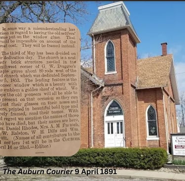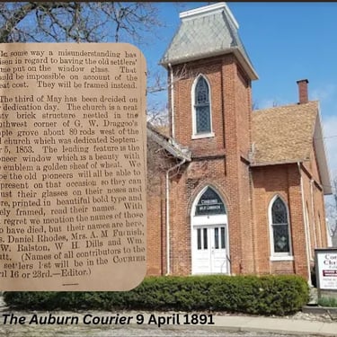 "The new church was built in the latter part of 1890 at a cost of $5,000. It was built of brick made at the brick mill at Concord. The wood was cut and sawed by the lumber mill also at Concord. A bell was installed in the steeple which was to ring out proudly for many years. The stained glass windows are considered today as some of the most beautiful windows in the country."