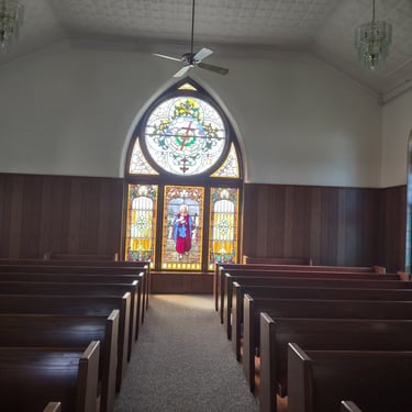The original St. Mark Lutheran Church was built in 1866 and most of the stained glass windows are original to that first building. They were gifts from the Order of Railroad Conductors, the Brotherhood of Locomotive Engineers, local fraternal groups, the Dorcas Society, and as memorials to loved ones. When that 1866 building was torn down and replaced in 1901, many of the bricks and windows were saved.